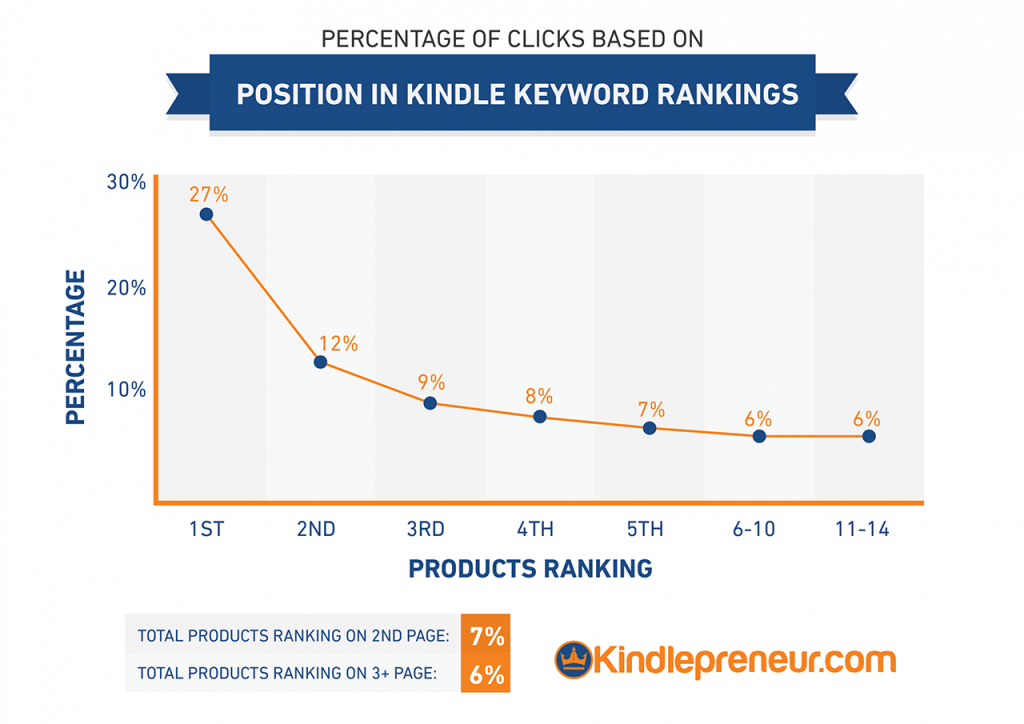 Let’s say 1,000 shoppers per month search for a keyword phrase on Amazon and your book ranks #1 on the results page. You can expect 270 shoppers per month to click on your book.