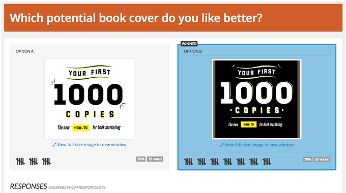 PickFu is a platform that allows you to perform A/B testing between 2 cover designs. Simply upload your book covers, and the PickFu community will vote on which one they like best. This can give you an accurate idea of where your covers stand.
